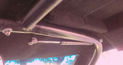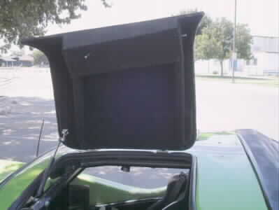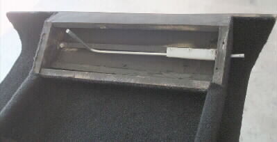 The next three pictures show the interior when tee-tops closed. The first one has the interior cover removed to show the latching rod. Note that I designed the system such that both open and closed positions are held in place the gas-lifts (over centered, center point is about 25% up).