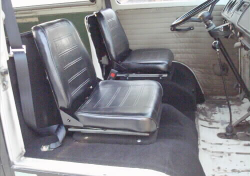 The first thing I did (after rewiring the starter button) was replace the seats and carpet the top of the wheel wells they sit on. The seats are actually tractor seats which were much less expensive than repairing or replacing the original seats.
