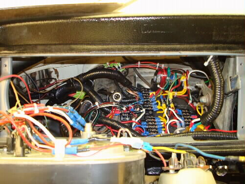 The above pictures show the rewiring of the dash just before I screwed the dash panel back on.