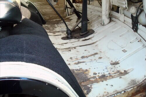 The original floor in the drivers area. There is some rust repair necessary before I can put down insulation and carpet.