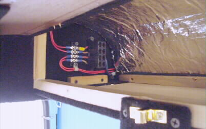 The above pictures show the cabinet framing and the fuse block in the rear of driver's side cabinet for the accessories that will run of the deep cycle RV battery.