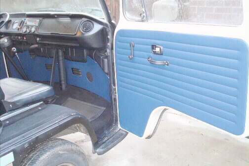 These show the nearly finished cab area with boots & trim around the shifter and E-Brake as well as the new kick and door panels.