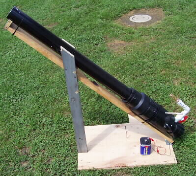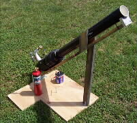 from scrap lumber and a hinge to set the 45 degree launch angle.