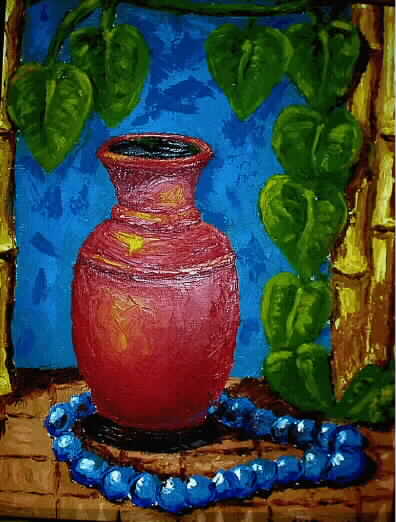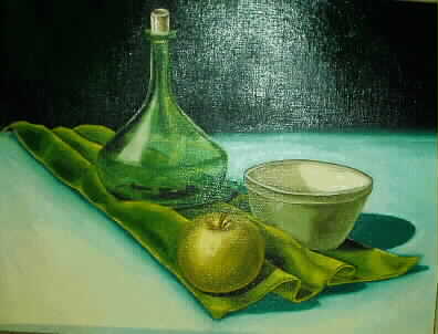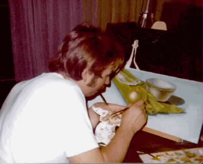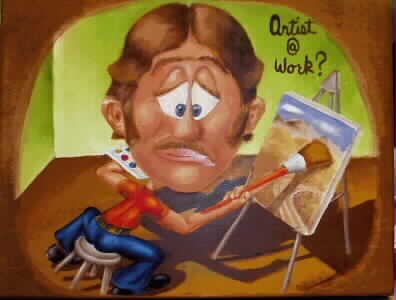 I haven't had a chance to do any oil painting in some time. I started with the idea that I would put a painting of Suzie and I in the foyer of the church at our wedding. I never finished that painting but did go on to do several others. They are in approximate chronological order of completion. The vase was done entirely by palatte knife. The cartoon is what I painted on the cover of my oil paint box as a conversation starter.
